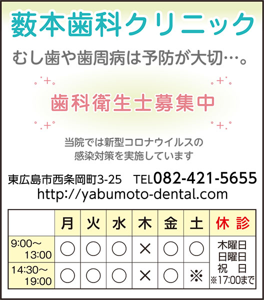 東広島市内の歯科医院・クリニックの一部を紹介。診療科目や時間、休診日などチェックしてみては。(順不同)