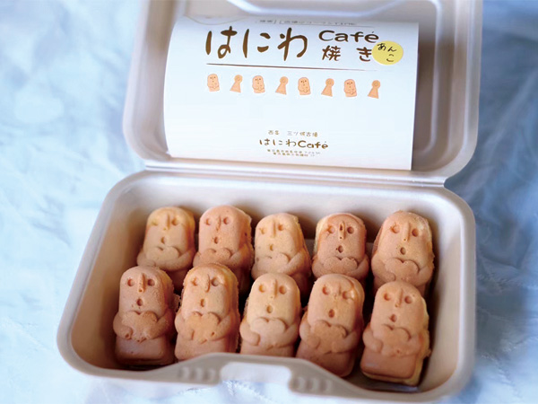 三ツ城古墳の名物になれば、という願いを込めて作られたはにわ型の人形焼き。電話で事前予約も可能。