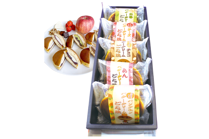 ♦パンプキンバタークリーム ♦栗粒あん抹茶バタークリーム ♦りんごあんチーズバタークリーム ♦キャラメルナッツあんチョコバタークリーム ♦あんバタークリームの5種。