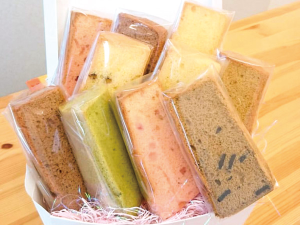 シフォンケーキは80種類以上の中から日替わりで販売しています。西条ならではの酒かすシフォン(200円)もカットシフォンケーキの中では人気があります。