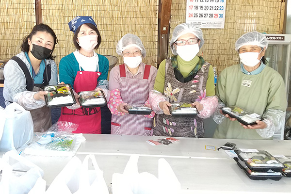 できるだけ塩分を控えるように、また季節のものを入れるように心がけながら、1つ300円という価格を維持するためのメニューづくりには苦労しています。でも、「彩り豊かで毎回楽しみ」「ここのお弁当しか食べられない」という地域の方の声が嬉しいです。