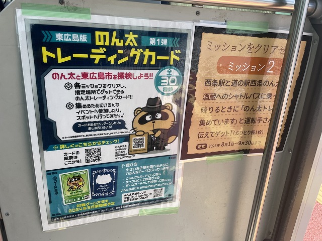 【西条駅と道の駅西条のん太の酒蔵へシャトルバスに乗って、降りるときに「のん太トレカ集めています」と運転手さんへ伝えてゲット!】期間:2023年8月1日~9月30日まで
