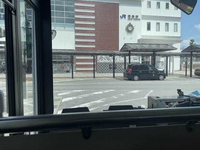 西条駅南口ロータリーから、道の駅のん太の酒蔵行きの無料バスへ乗ります。