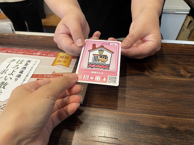 撮影したのん太ポストの写真を店員さんに見せ、カードをいただきました。酒蔵のイラストが可愛い!