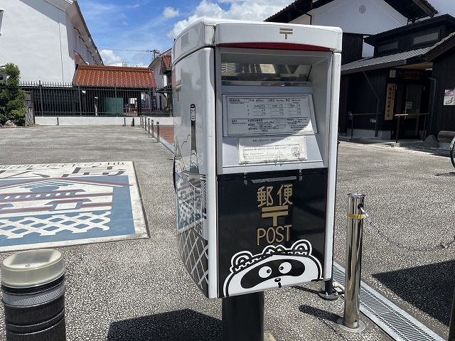 のん太のポストを発見!白黒のポストが景色に溶け込んでいます。