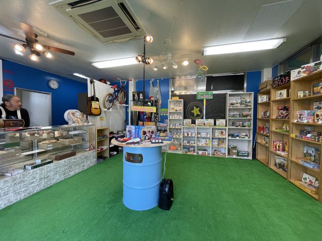 もともとは、ガソリンスタンドだった店舗を手作りでリフォーム。店舗の奥の方を見せてもらうと、大杉さんの秘密基地のような場所になっていました!(笑)。お店は目立ちますから、すぐに分かるはず。ぜひ、気軽に立ち寄ってみてくださいね。