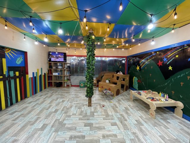 広いプレイルーム。小さなお子さんの、足音を気にせず走り回れます。