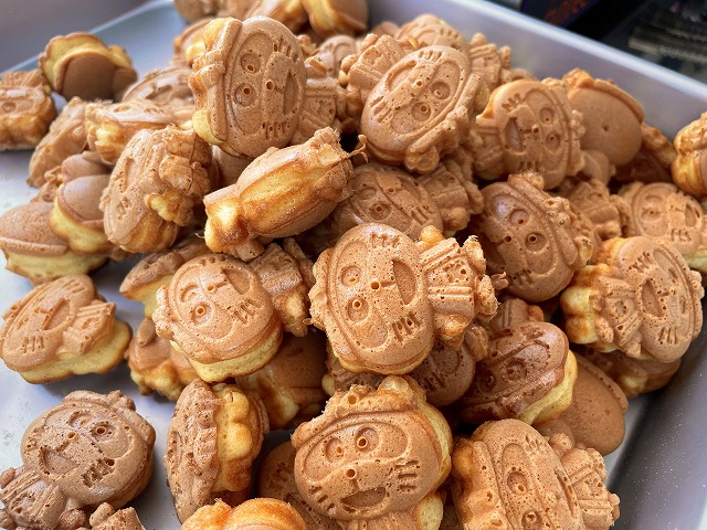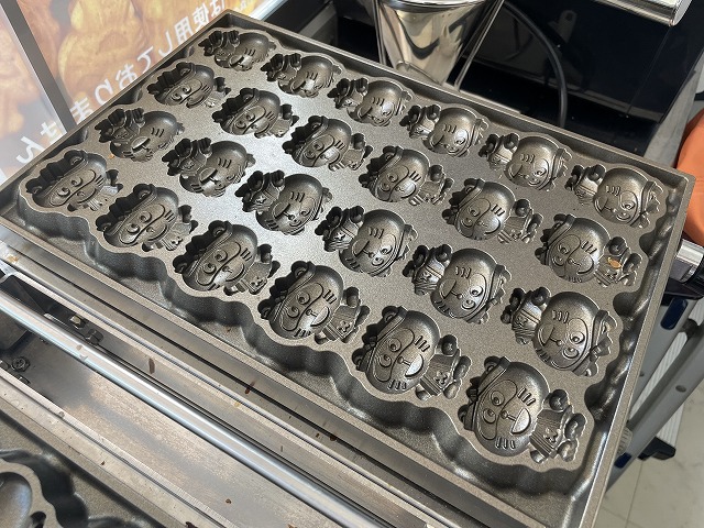 特別に、焼く前の鉄板を見せていただきました!おへそやしっぽなど、のん太の細かいところまで掘られています。ここに生地を入れて…どんな風に仕上がるのでしょうか…ワクワク♪