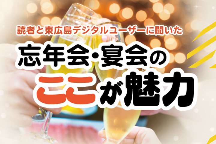 もうすぐ忘年会シーズン!読者や東広島デジタルユーザーに聞いた「忘年会のいいところ」「忘年会・宴会でのエピソード」「2次会へ行くとしたらどんなお店?」を紹介します。