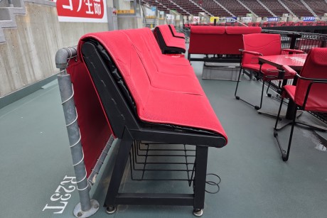 ライト側(右外野)のバックスクリーンのよこに、「寝ソベリア」という席がありましたが、今年(2025年)から「チルアウトテラス」という新しい席に生まれ変わりました!