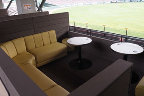 ふかふかのソファ席でくつろぎながら観戦!しかも屋根つきだから、日差しや雨も大丈夫!