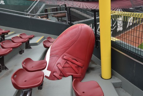 マツダ スタジアムのライトスタンドの近くには、なんと大きなスパイクのオブジェがあります!