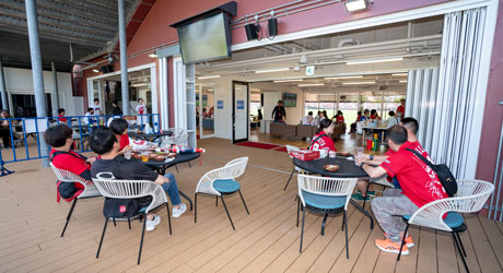 家族やグループで楽しめる特別な席がたくさんあって、ごはんを食べながら、テーブルを囲んで、みんなでわいわい試合を楽しめるんです!