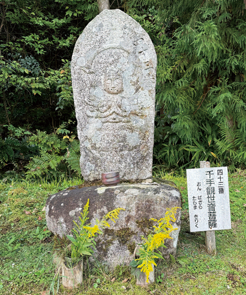 実は、他の石仏も、枕崎台風、台風19号、そして平成30(2018)年西日本豪雨で土石流の被害を受けています。枕崎台風では43番だけでなく、39、41番の石仏も土石流に巻き込まれ、やはり台風19号がきっかけで見つかり、両石仏は元の位置に安置されました。ところが、西日本豪雨で9、12、41番の石仏が流され、9番は発見されたものの、12、41番はいまだに見つかっていません(現在は身代わりの地蔵が安置されています)。近代以降の土石流の歴史が、石仏の受難からもわかるのです。
