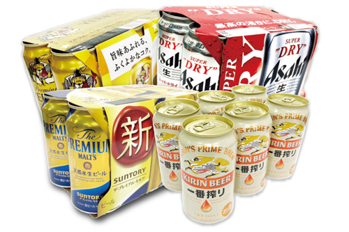 キリン 一番搾り・サントリー プレミアムモルツ・アサヒ スーパードライ・サッポロ ヱビスビール」のいずれか