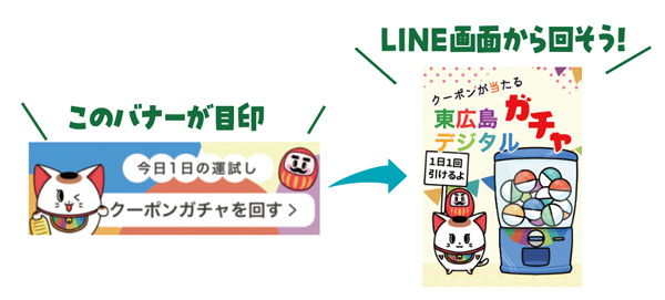 ②ウェブサイト「東広島デジタル」のトップページからクーポンガチャを回す