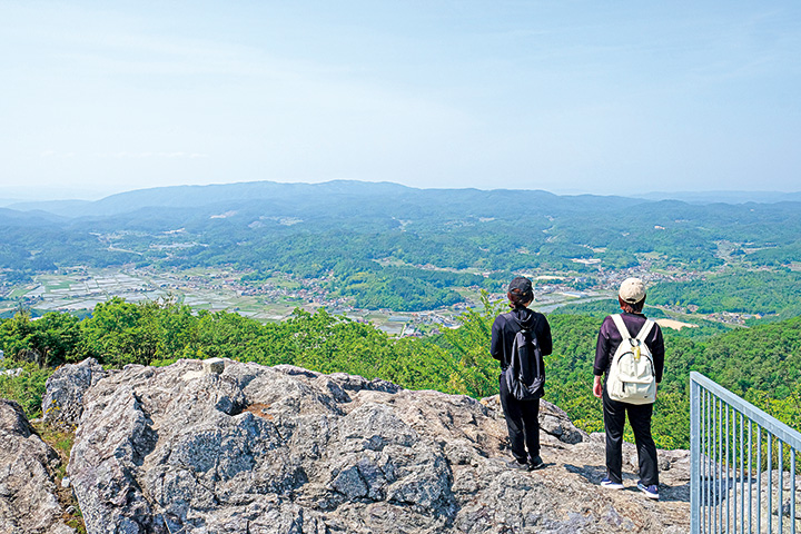 標高757㍍の板鍋山。山頂付近には公園「なごみ園」や展望台があり、展望台からは360度のパノラマを満喫できます。車で山頂近くまでアクセスできるため、気軽に山の空気を味わいながら、絶景を堪能できます。
