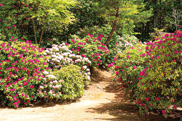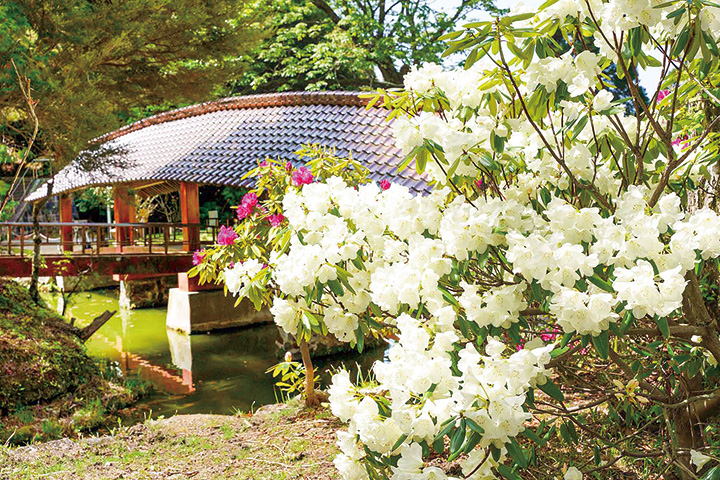 福成寺は、シャクナゲの名所としても知られています。境内に約100種類、2400本のシャクナゲがあり、4月上旬から5月上旬にかけて次々に咲き誇ります。