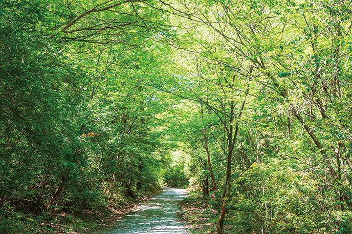 長寿の森には、エメラルドグリーンの豊穣池(ほうじょういけ)があり、そのほとりに遊歩道や広場が整備されています。散策やハイキングにぴったり。地域や企業の人たちが手入れしており、春は桜がきれいです。
