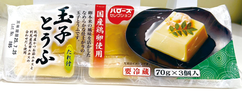 ハローズのイチオシ商品。枕崎産かつお節と利尻産昆布の香り高い合わせだしに、国産卵をたっぷり使い、なめらかに仕上げた玉子とうふ。口に広がる、やさしいうま味をどうぞ。