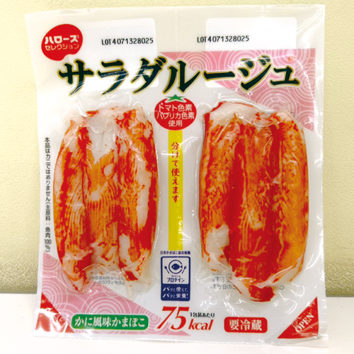 サラダにぴったり。極細繊維仕立てで、ほぐれやすいかに風味のかまぼこ。真空タイプなので賞味期限が長く、食べきりサイズのツインパックで便利。