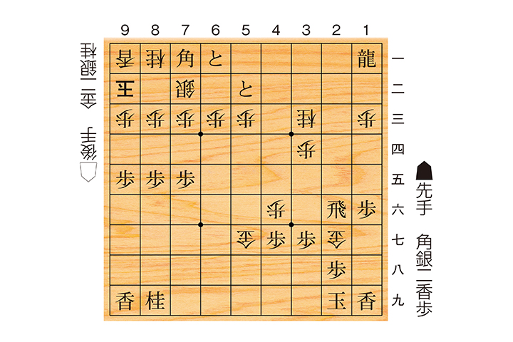 (2)☗6一香成は☖8二玉☗7一成香☖5一角で先手敗勢。