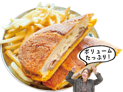 「日常使いできる気取らない店」がコンセプトのカフェ。看板メニューのキューバサンドは、自家製のモホローストポーク、生ハム、ピクルス、チーズソースを挟み、鉄板でプレスして焼き上げている。
