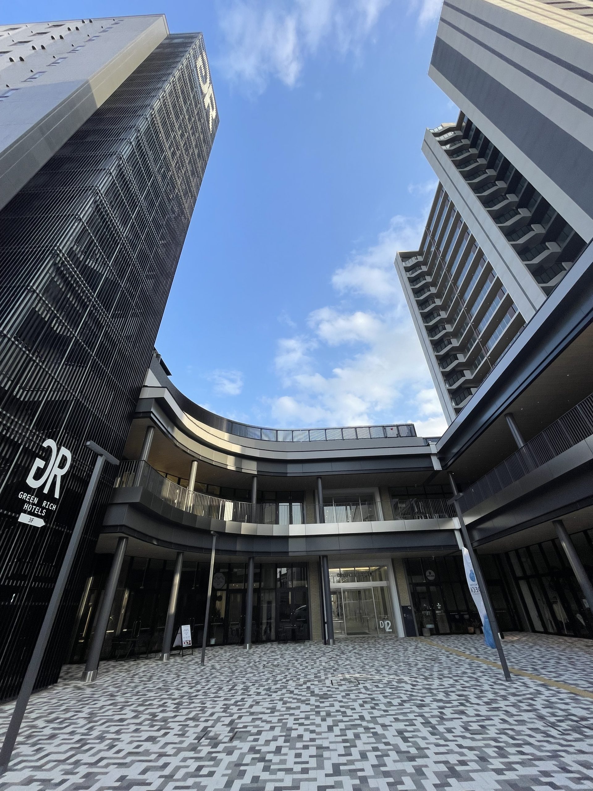 JR徳山駅と屋上庭園のデッキでつながる複合施設。オフィスやホテルなどが入った5棟が立ち並び、ショップなどが続々とオープンしている。