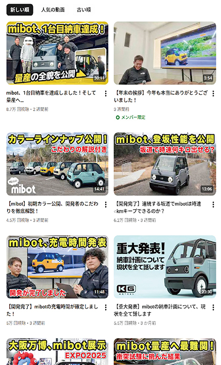東広島市で一人乗り電気自動車「mibot(ミボット)」を開発・製造・販売している会社。衝突試験や坂道走行などリアルな検証で、車を購入する際に気になるスペックを楽しく紹介しています。