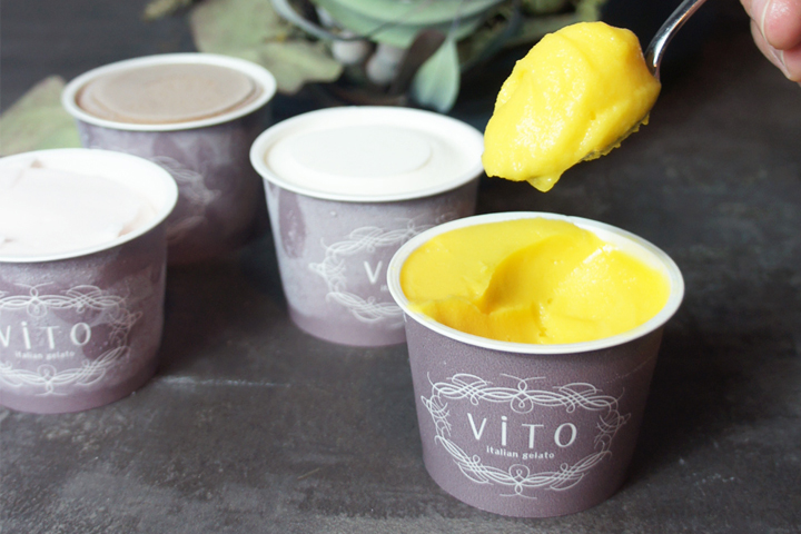 ジェラート職人が厳選した素材を使用し、独自の製法で仕上げた手づくりジェラート。ラテ、マンゴー、ピスタチオなどのフレーバーがあります。